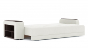 Механизм трансформации - еврокнижка. Наполнение - ПБ + высокоэластичный ППУ. Полка ЛДСП. Ящик для белья - есть. Чехлы подушек - несъемные, наполнение - крошка ППУ.
