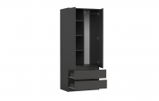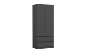 Двухдверный распашной шкаф с двумя выдвижными ящиками. Внутри шкаф оборудован штангой для хранения одежды и вещей.