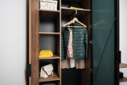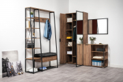Двухдверный распашной шкаф для одежды из модульной серии «Гранд» в стиле «лофт». Выдвижная усиленная штанга в шкафу обеспечивает компактное хранение верхней одежды. Петли оснащены доводчиками.